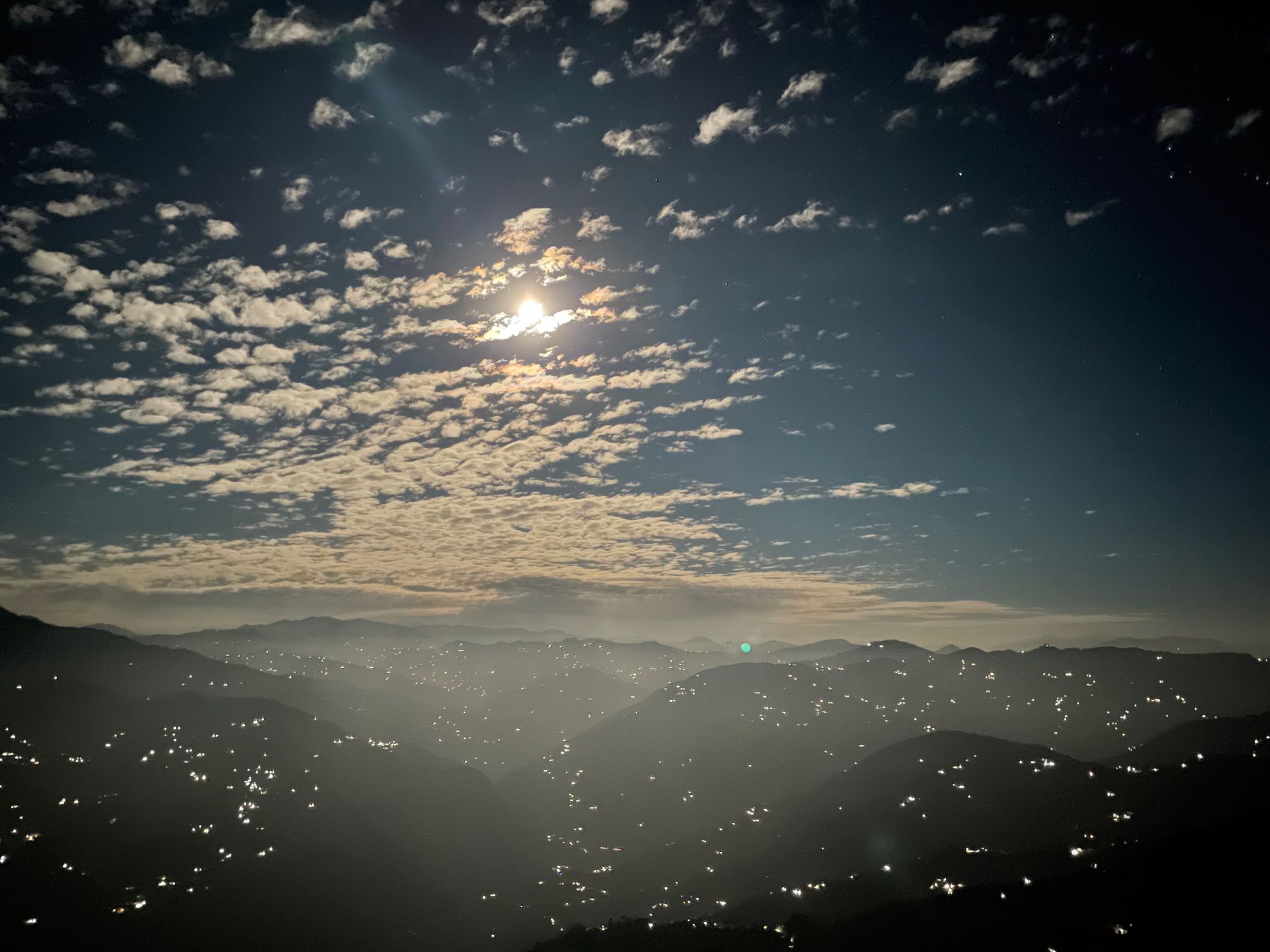 After spending a day at Kasauli, we drove towards Mashobra. We checked into our Airbnb–The Cloudberry–around 3 pm where we were greeted and escorted by a couple of staff members–yes, the apartment had its own staff. The place took us by surprise due to its efficient use of the 1100 sq. ft area with a modern touch. The balcony view was breathtaking, showcasing layers of elevating mountains. We spent the evening chilling in the house followed by a bonfire in the balcony amid the -3°C weather. Before concluding the day, we watched Akshay Kumar's Sooryavanshi 🎥 in the lobby–perhaps, not the best choice.